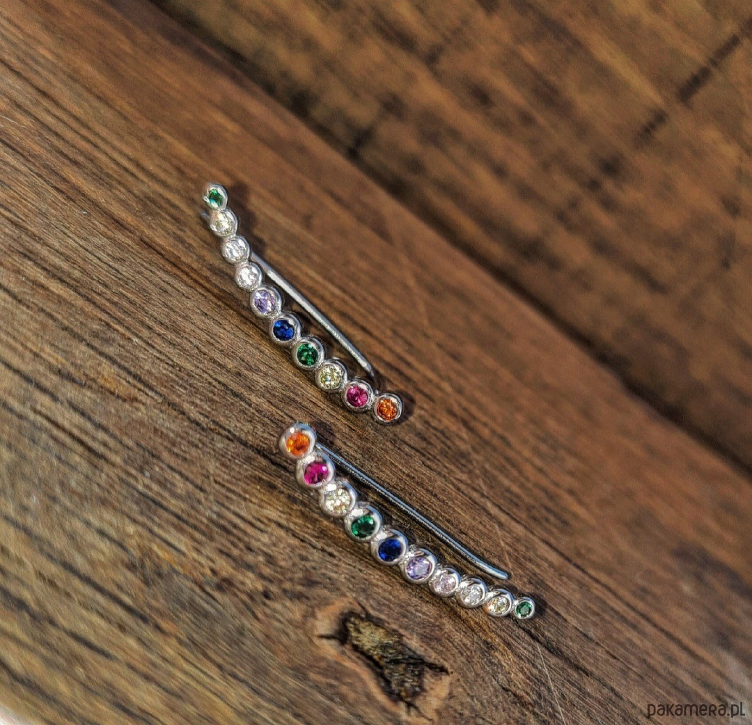 Czaki Bransoletki to modne piękne kolczyki, komplet 2szt. Srebro 925 pokryte 24kt złotem lub srebro rodowane z kolorowymi kamyczkami. Wymiary 3,5cm.