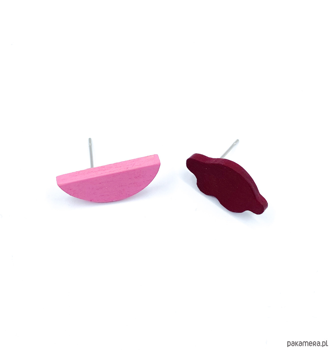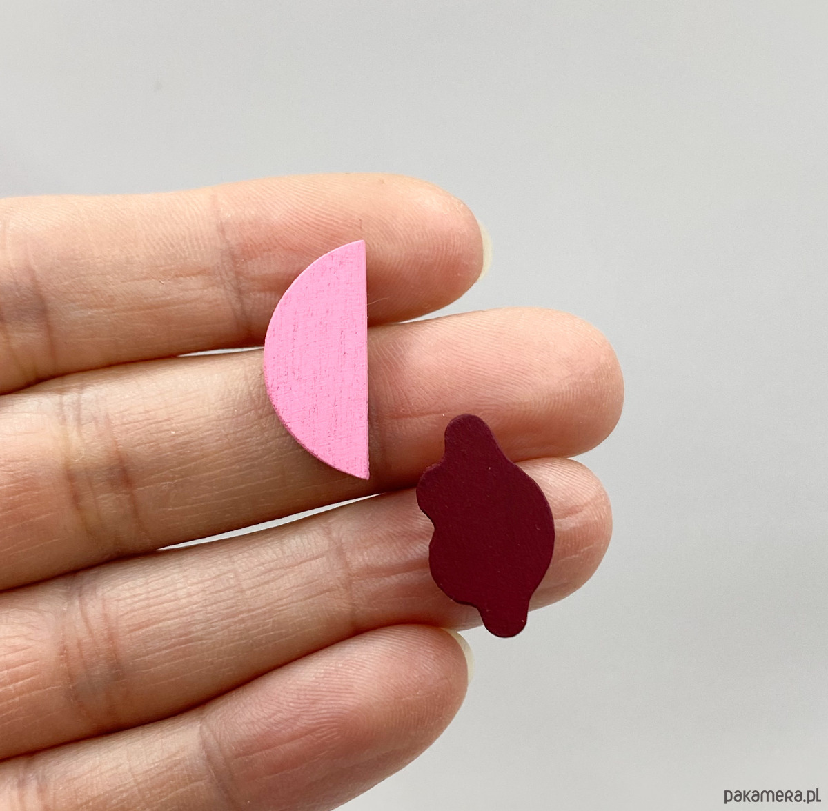 Kolczyki Nie Do Pary w nieco większym wydaniu. Zostały wykonane z drewna brzozowego, są pokryte farbą akrylową oraz matowym lakierem wodnym.