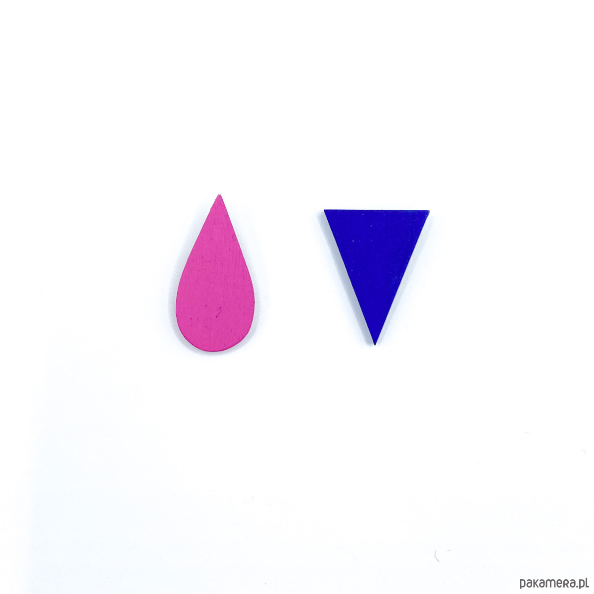Kolczyki Nie Do Pary w nieco większym wydaniu. Zostały wykonane z drewna brzozowego, są pokryte farbą akrylową oraz matowym lakierem wodnym.