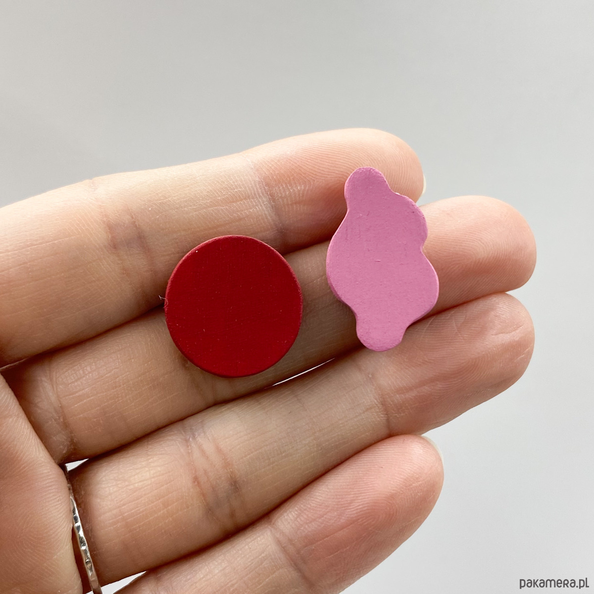 Kolczyki Nie Do Pary w nieco większym wydaniu. Zostały wykonane z drewna brzozowego, są pokryte farbą akrylową oraz matowym lakierem wodnym.