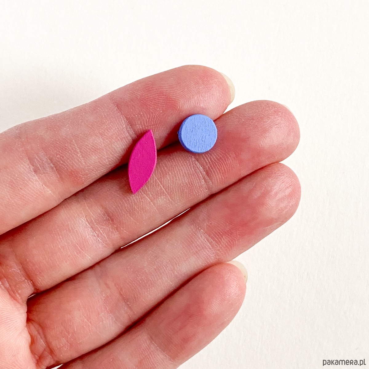 Kolczyki Nie Do Pary Mini można łączyć z Kolczykami Mini z blaszką i dowolnie miksować ze sobą kolorowe Drewienka.