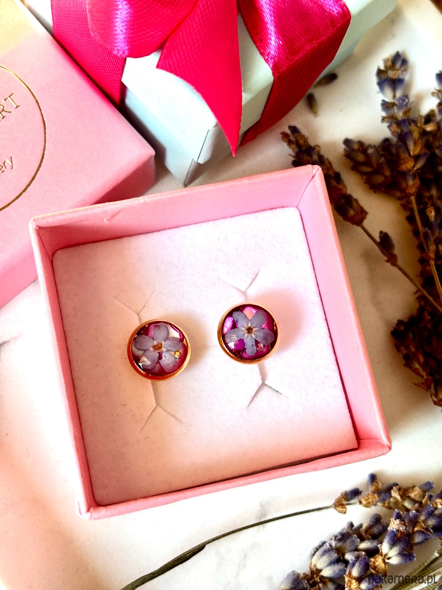 Kolczyki niezapominajki na różu