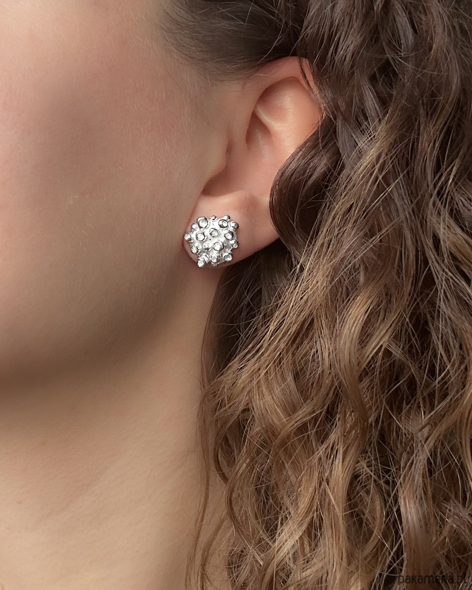 Srebrne nieregularne kolczyki inspirowane macką ośmiornicy. Wyrzeźbiony ręcznie w wosku, następnie odlane w srebrze próby 925 i ręcznie wykończone.