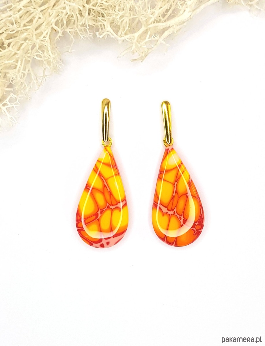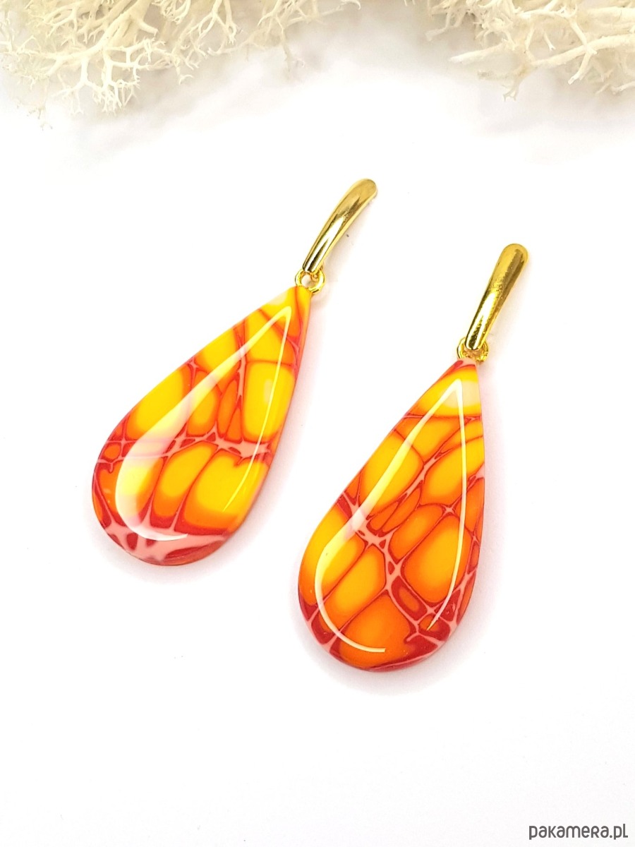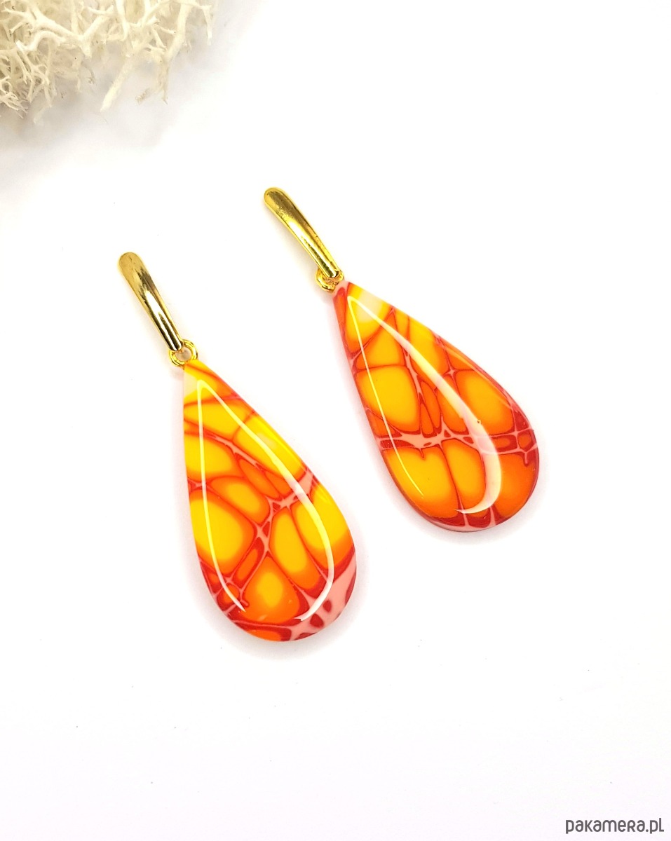 Wypiekane w piecu przewieszki wykonane zostały z profesjonalnej gliny polimerowej w różnych odcieniach pomarańczy, żółci i czerwieni.