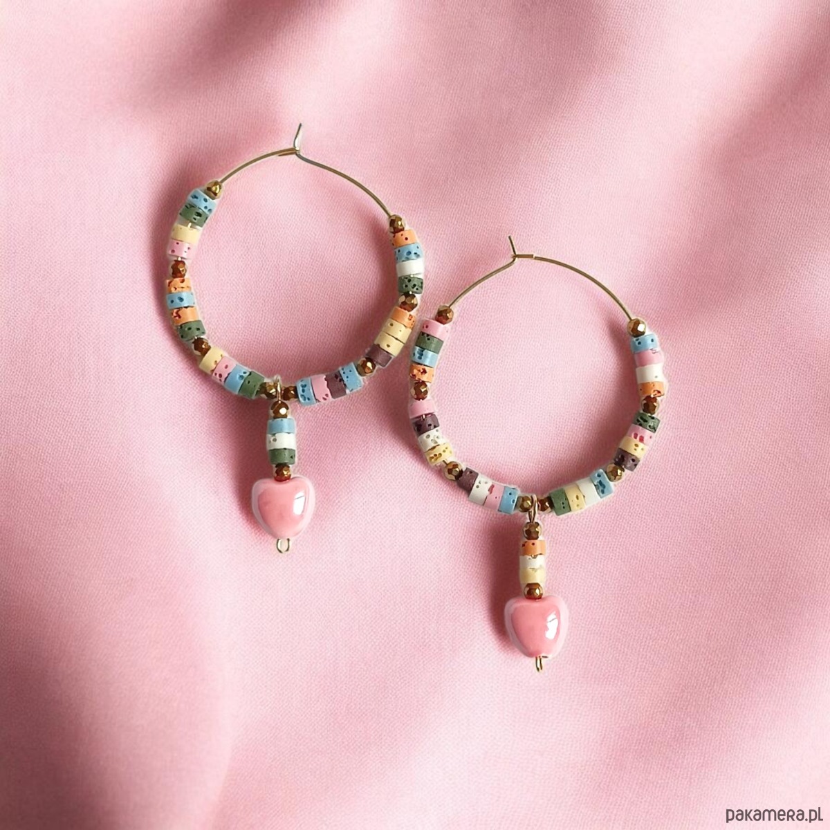 Kolczyki z serduszkami : okazałe, duże : lawa, serduszka ceramiczne