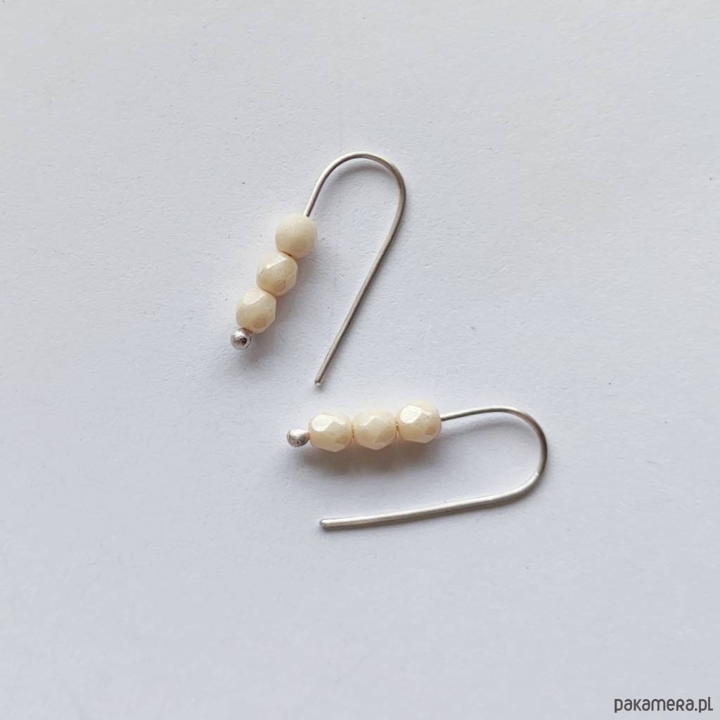 Oryginalność i prostota. OKRĄG - kształt doskonały. Kolekcję cechuje elegancja i prostota jak również ekstrawagancja i indywidualizm. Kolczyki wykonane są z - srebro, koraliki czeskie 0,4 cm. Srebro - zmatowione. Długość ok 2,5cm.