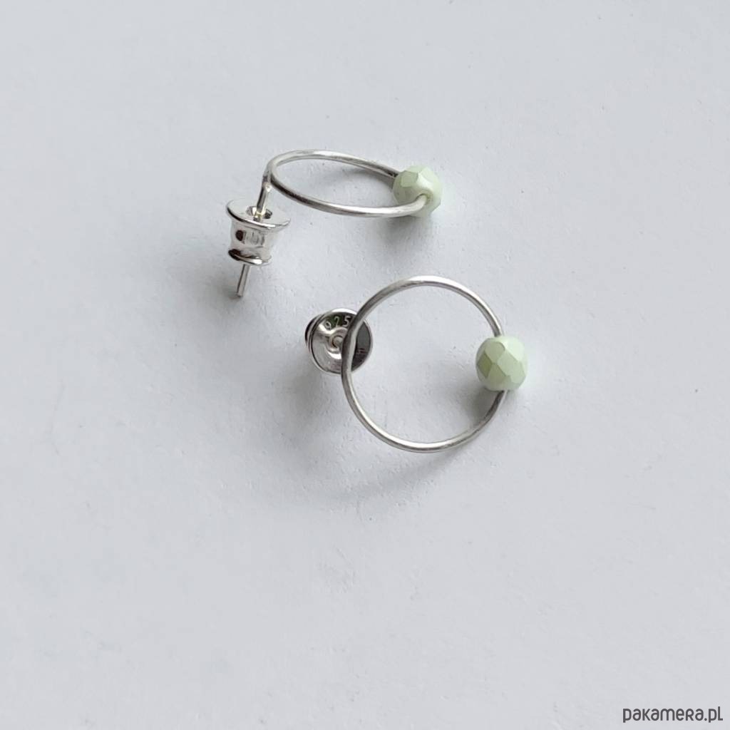Oryginalność i prostota. OKRĄG - kształt doskonały. Kolekcję cechuje elegancja i prostota jak również ekstrawagancja i indywidualizm. Kolczyki na sztyftach wykonane są z - srebro, koraliki czeskie - 0,4 cm Srebro - zmatowione. Szerokość ok. 1,2 cm.