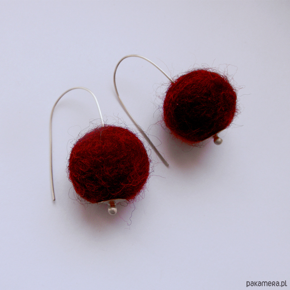 Oryginalność i prostota. OKRĄG - kształt doskonały. Kolekcję cechuje elegancja i prostota jak również ekstrawagancja i indywidualizm. Kolczyki wykonane są ze srebro, pompon ( 20 mm) Srebro - próby 0,925, zmatowione . Długość kolczyków  - ok. 3,5 cm