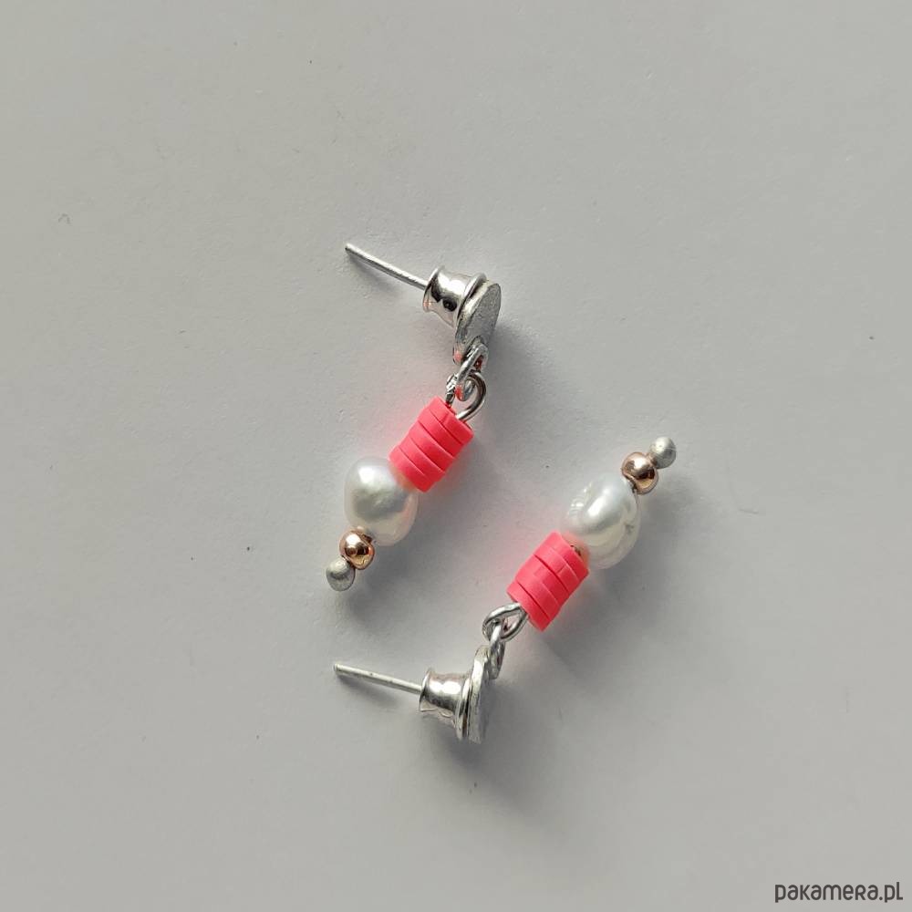 Oryginalność i prostota. OKRĄG - kształt doskonały. Kolekcję cechuje elegancja i prostota jak również ekstrawagancja i indywidualizm. Kolczyki na sztyftach wykonane są z : srebro, Perła hodowlana (0k. 0,8 cm), koraliki Katsuki (średnicy 4mm), szklane koraliki.Srebro - próby 0,925, zmatowione, . Długość kolczyków - ok. 3 cm