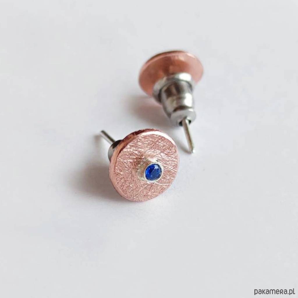 Oryginalność i prostota. OKRĄG - kształt doskonały. Kolekcję cechuje elegancja i prostota jak również ekstrawagancja i indywidualizm. Kolczyki na sztyftach wykonane są z : miedź, srebro, szafir Srebro - próby 0,925, miedź- zmatowiony. Średnica kolczyka - 0,7 cm