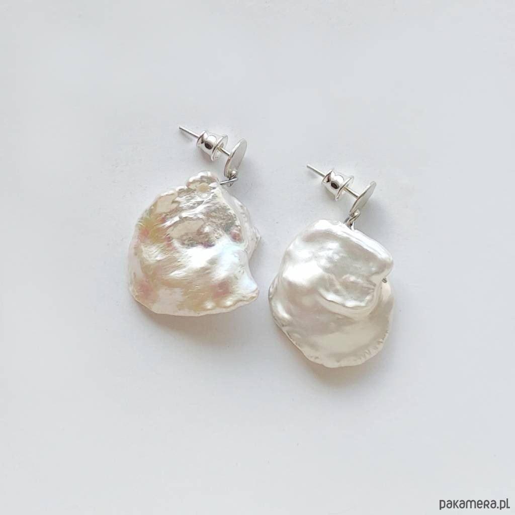 Oryginalność i prostota. OKRĄG - kształt doskonały. Kolekcję cechuje elegancja i prostota jak również ekstrawagancja i indywidualizm. Kolczyki na sztyftach wykonane są z : srebro, Perła słodkowodna biała płatki 2-2,5 cm .Srebro - próby 0,925, zmatowione, . Długość kolczyków - ok. 4cm