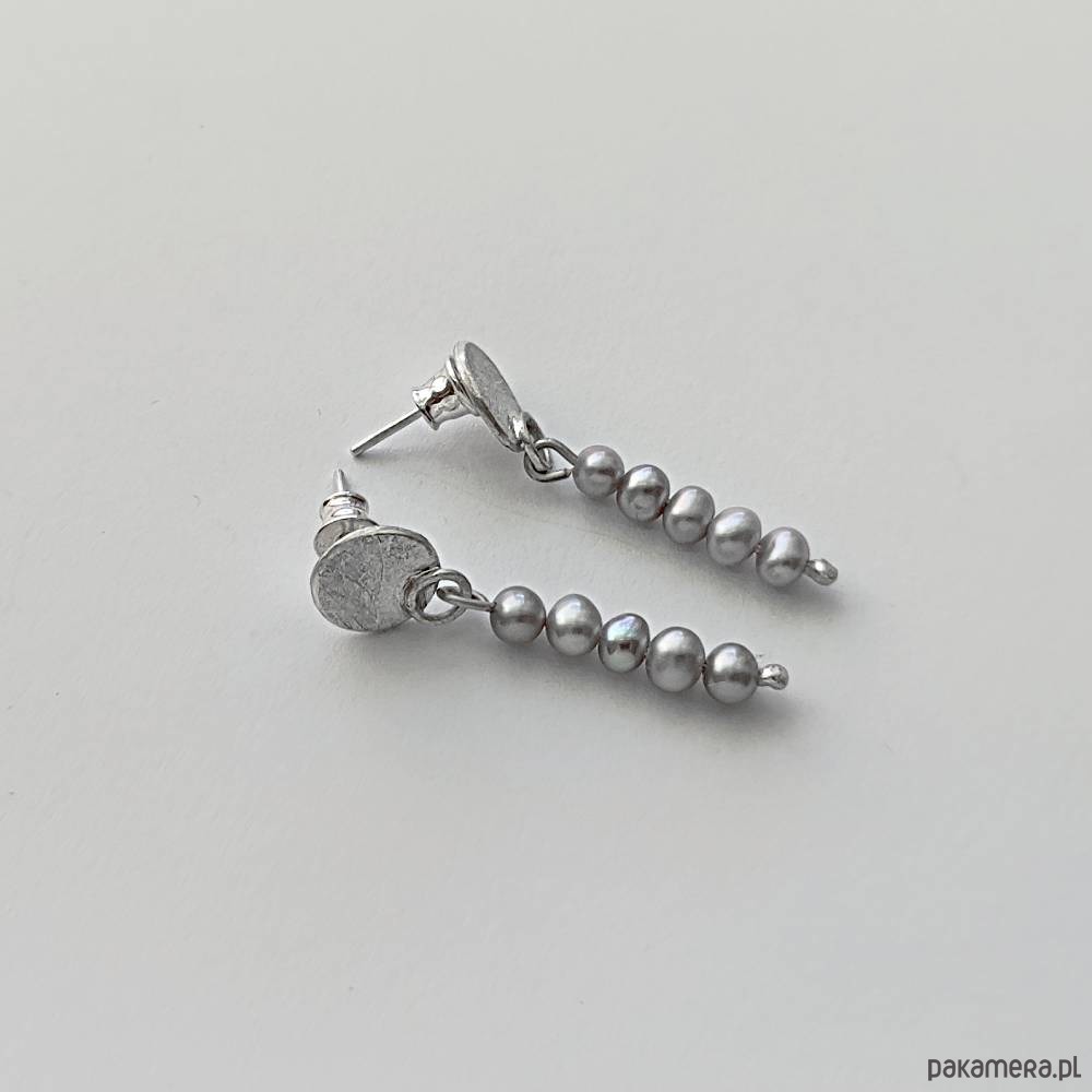 Oryginalność i prostota. OKRĄG - kształt doskonały. Kolekcję cechuje elegancja i prostota jak również ekstrawagancja i indywidualizm. Kolczyki wykonane są z - srebro, Perła słodkowodna srebrna oponka 5x3mm. Srebro - zmatowione. Długość ok. 3,5 cm.