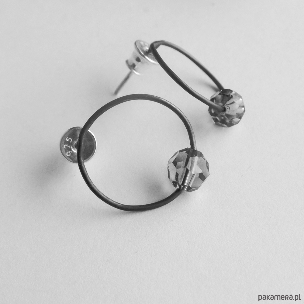 Oryginalność i  prostota. OKRĄG -  kształt doskonały.  Kolekcję cechuje  elegancja i prostota  jak również  ekstrawagancja i   indywidualizm.   Kolczyki  na  sztyftach wykonane  są  z - srebro, SWAROVSKI ELEMENTS (Wymiary: 6mm)  Srebro -  zmatowione, oksydowane.  Szerokość ok. 1,5  cm.