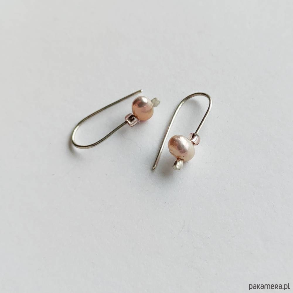 Oryginalność i prostota. OKRĄG - kształt doskonały. Kolekcję cechuje elegancja i prostota jak również ekstrawagancja i indywidualizm. Kolczyki wykonane są z - srebro, Perła słodkowodna biwa fioletowa 6x5mm , szklane koraliki. Srebro - zmatowione. Długość ok 1,7 cm.