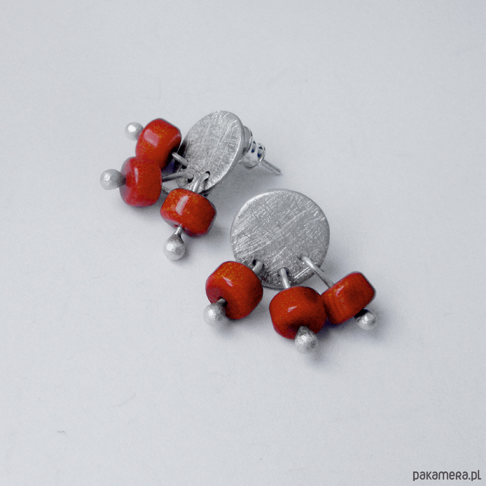 Oryginalność i prostota. OKRĄG - kształt doskonały. Kolekcję cechuje elegancja i prostota jak również ekstrawagancja i indywidualizm. Kolczyki na sztyftach wykonane są z - srebro, koral 0,6cm. Srebro - zmatowione. Szerokość ok. 1,3 cm. Długość ok. 2 cm.