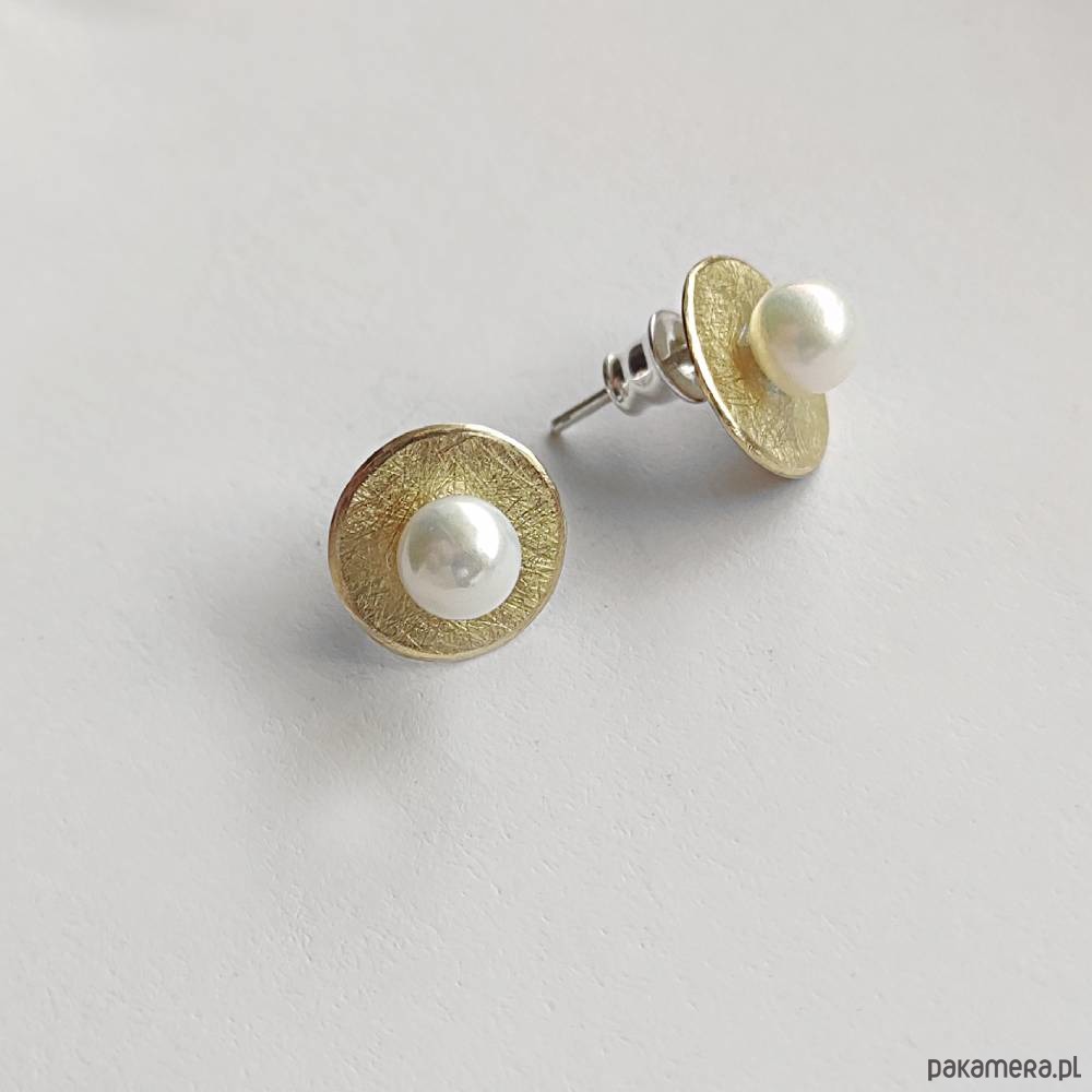 Oryginalność i prostota. OKRĄG – kształt doskonały. Kolekcję cechuje elegancja i prostota jak również ekstrawagancja i indywidualizm. Kolczyki na sztyftach wykonane są z :mosiądz, srebro, Perła biała ( 0k 6mm) , srebro pr. 925 , mosiądz – zmatowiona . Długość kolczyków – ok. 1,2cm
