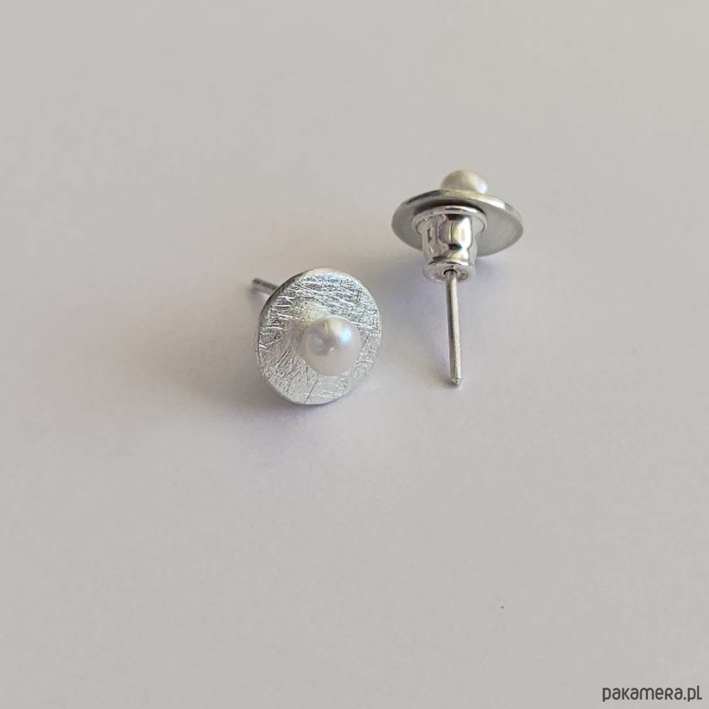 Oryginalność i prostota. OKRĄG - kształt doskonały. Kolekcję cechuje elegancja i prostota jak również ekstrawagancja i indywidualizm. Kolczyki na sztyftach wykonane są z : srebro, Perła biała( ok 4 mm) Srebro - próby ,925, zmatowione, . Długość kolczyków - ok. 1cm