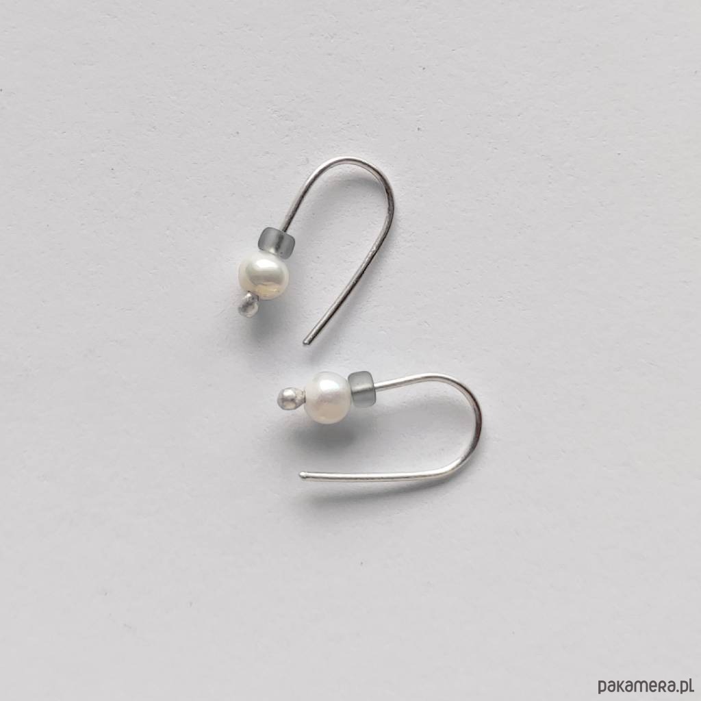 Oryginalność i prostota. OKRĄG - kształt doskonały. Kolekcję cechuje elegancja i prostota jak również ekstrawagancja i indywidualizm. Kolczyki wykonane są z - srebro, Perła słodkowodna srebrna oponka 4mm, szklane koraliki. Srebro - zmatowione. Długość ok 1,7 cm.