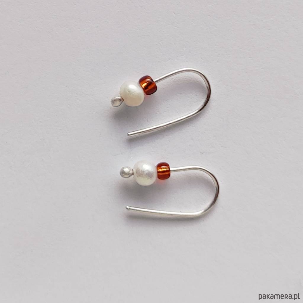 Oryginalność i prostota. OKRĄG - kształt doskonały. Kolekcję cechuje elegancja i prostota jak również ekstrawagancja i indywidualizm. Kolczyki wykonane są z - srebro, Perła słodkowodna srebrna oponka 4mm, szklane koraliki. Srebro - zmatowione. Długość ok 1,7 cm.