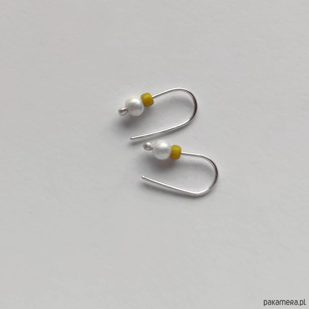 Oryginalność i prostota. OKRĄG - kształt doskonały. Kolekcję cechuje elegancja i prostota jak również ekstrawagancja i indywidualizm. Kolczyki wykonane są z - srebro, Perła słodkowodna srebrna oponka 4mm, szklane koraliki. Srebro - zmatowione. Długość ok 1,7 cm.