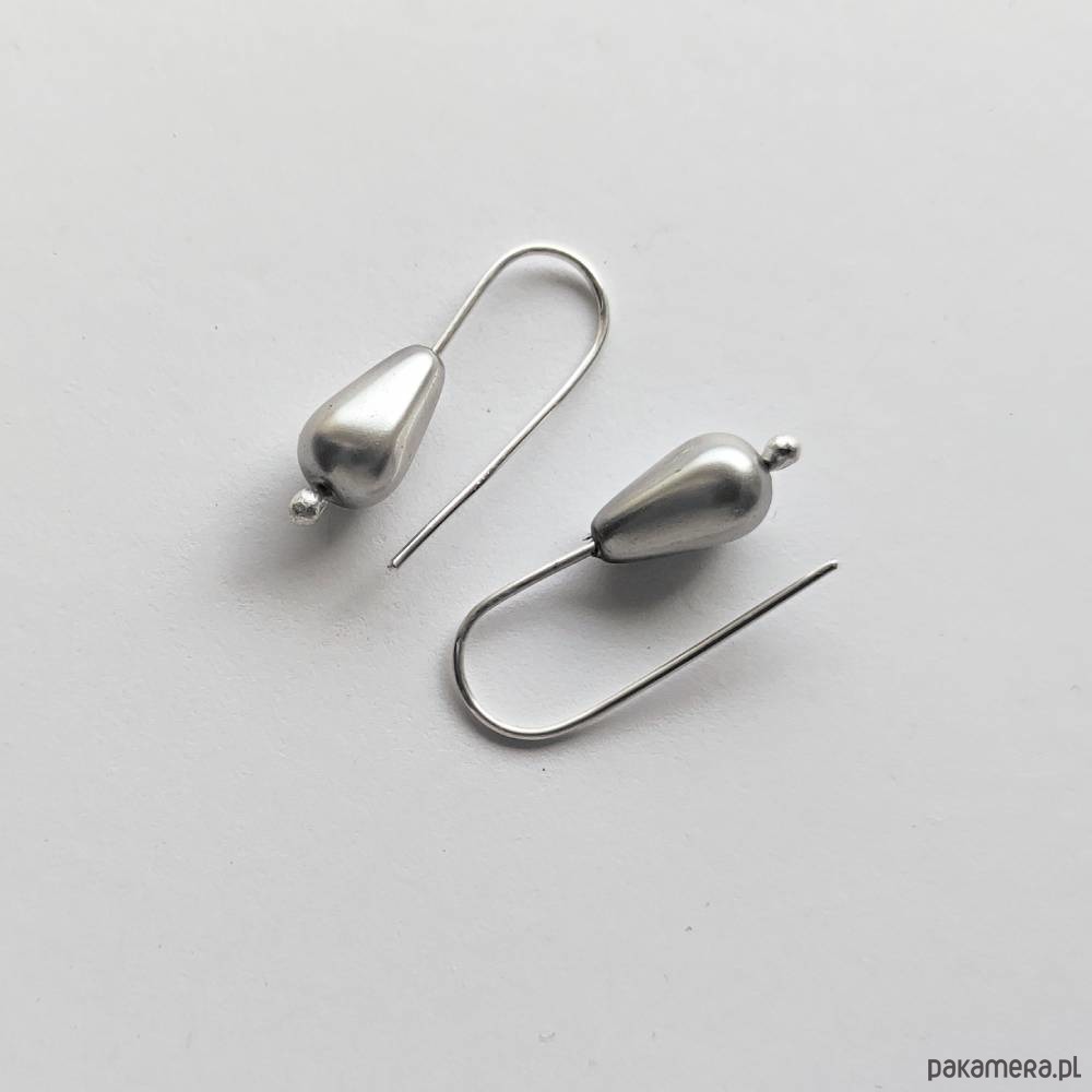 Oryginalność i prostota. OKRĄG - kształt doskonały. Kolekcję cechuje elegancja i prostota jak również ekstrawagancja i indywidualizm. Kolczyki wykonane są ze srebro, Szklana perła kropla szara9x6mmSrebro - próby 0,925, zmatowione, . Długość kolczyków - ok. 2 cm