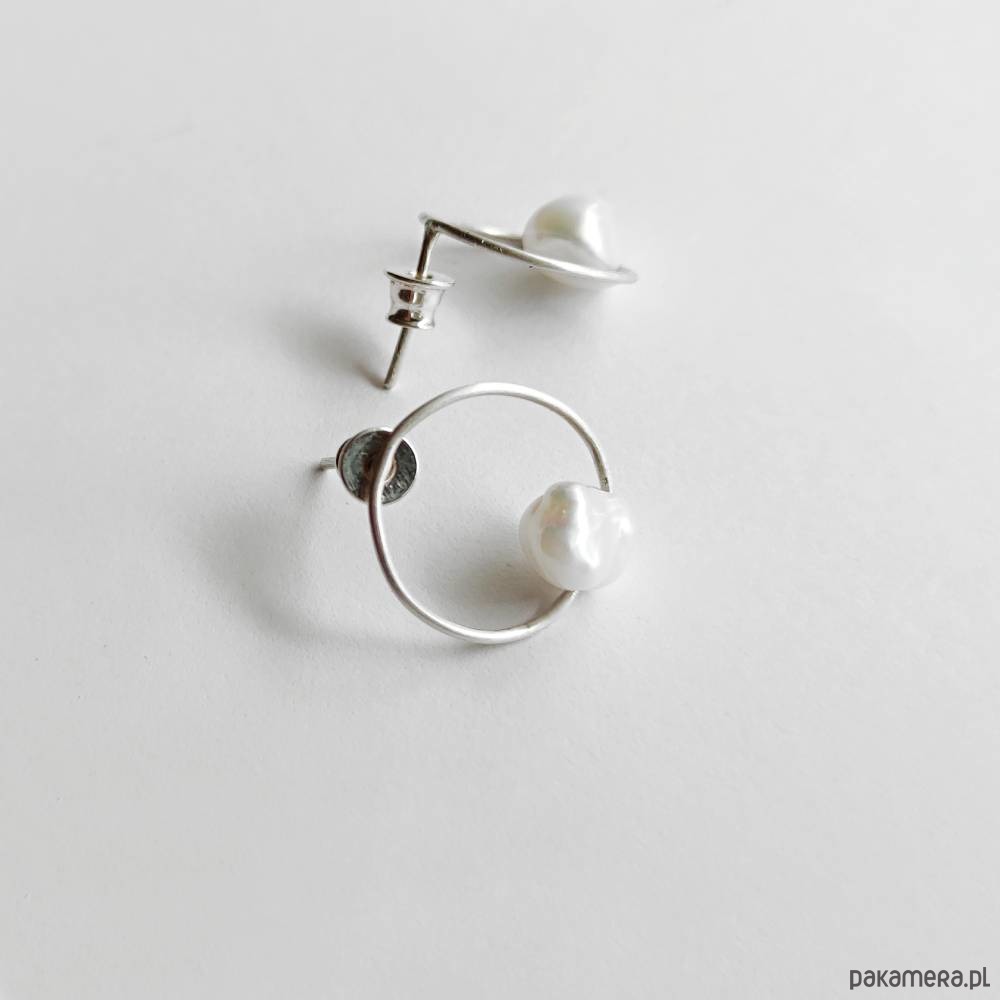 Oryginalność i prostota. OKRĄG - kształt doskonały. Kolekcję cechuje elegancja i prostota jak również ekstrawagancja i indywidualizm. Kolczyki na sztyftach wykonane są z - srebro, perła słodkowodna - 0,8 cm Srebro - zmatowione. Szerokość ok. 1,5 cm.