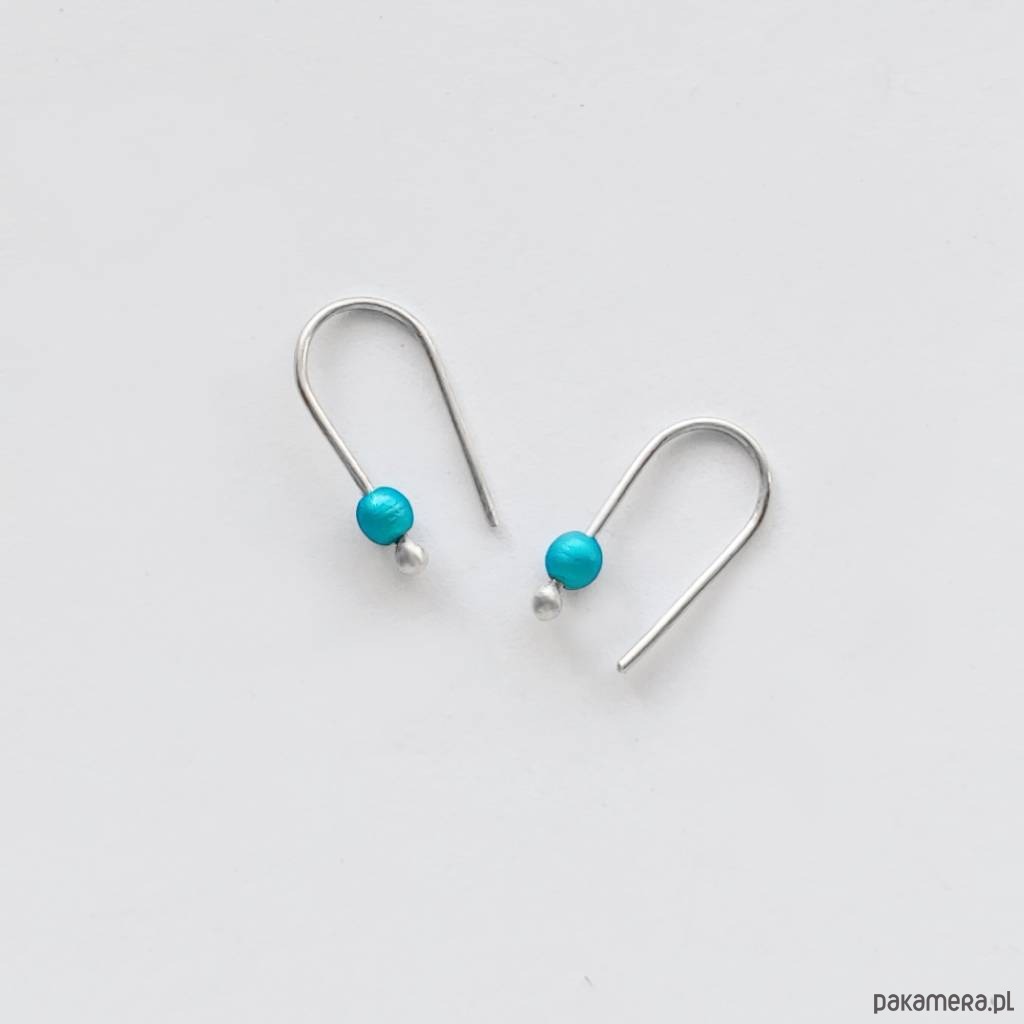 Oryginalność i prostota. OKRĄG - kształt doskonały. Kolekcję cechuje elegancja i prostota jak również ekstrawagancja i indywidualizm. Kolczyki wykonane są z - srebro, koraliki szklane 0,3cm. Srebro - zmatowione. Długość ok 1,7 cm.