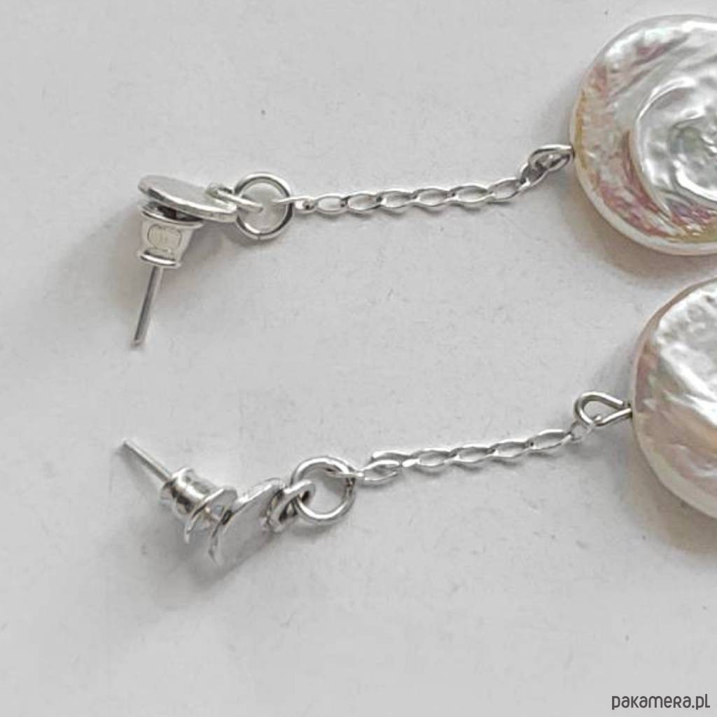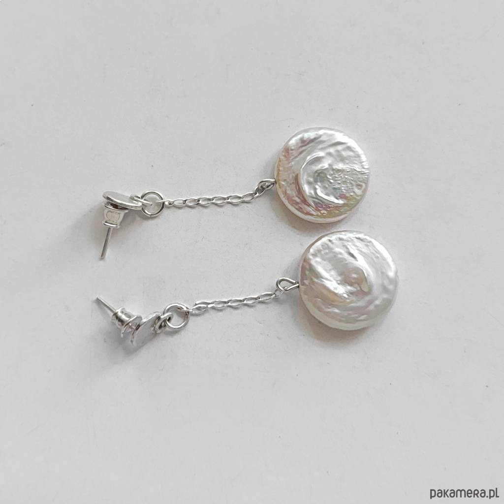 Oryginalność i prostota. OKRĄG – kształt doskonały. Kolekcję cechuje elegancja i prostota jak również ekstrawagancja i indywidualizm. Kolczyki wykonane są ze srebro, perła słodkowodna biała 18mm. Srebro – próby 0,925, zmatowione. Długość kolczyków – ok. 5,5 cm