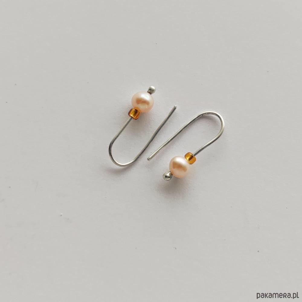 Oryginalność i prostota. OKRĄG - kształt doskonały. Kolekcję cechuje elegancja i prostota jak również ekstrawagancja i indywidualizm. Kolczyki wykonane są z - srebro, Perła słodkowodna ( 6 mm), szklane koraliki. Srebro - zmatowione. Długość ok 1,7 cm.