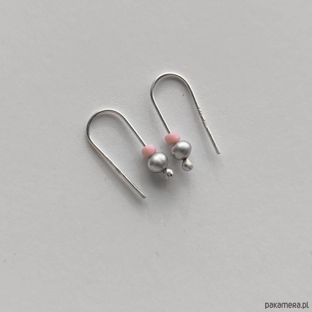 Oryginalność i prostota. OKRĄG - kształt doskonały. Kolekcję cechuje elegancja i prostota jak również ekstrawagancja i indywidualizm. Kolczyki wykonane są z - srebro, Perła słodkowodna srebrna oponka 5x3mm, szklane koraliki. Srebro - zmatowione. Długość ok 1,7 cm.