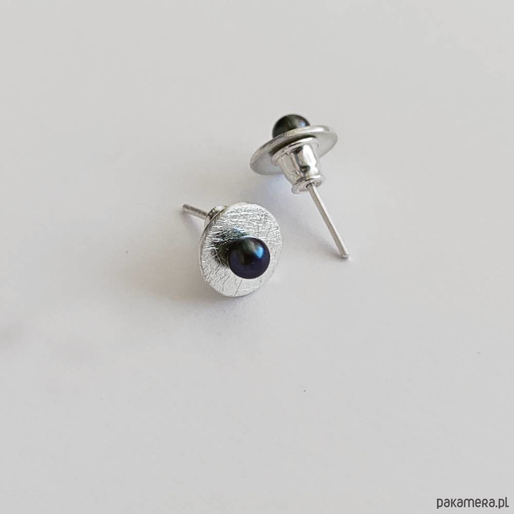 Oryginalność i prostota. OKRĄG - kształt doskonały. Kolekcję cechuje elegancja i prostota jak również ekstrawagancja i indywidualizm. Kolczyki na sztyftach wykonane są z : srebro, Perła granatowa( ok 4 mm) Srebro - próby ,925, zmatowione, . Długość kolczyków - ok. 1cm