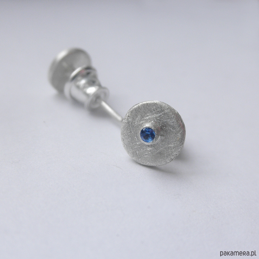 Oryginalność i prostota. OKRĄG - kształt doskonały. Kolekcję cechuje elegancja i prostota jak również ekstrawagancja i indywidualizm. Kolczyki na sztyftach wykonane są ze srebro, cyrkonia. Srebro - próby 0,925, zmatowione. Średnica kolczyka - 0,7 cm
