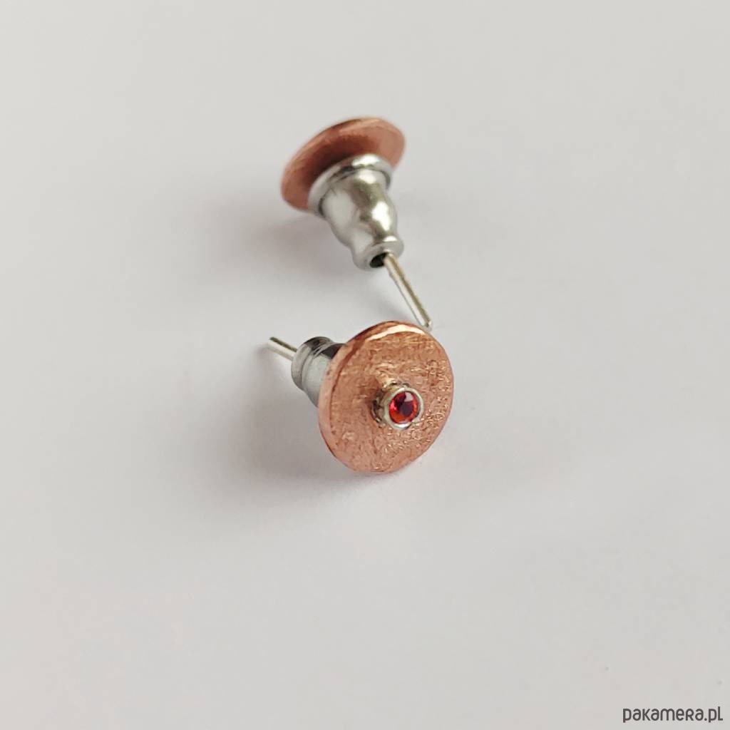 Oryginalność i prostota. OKRĄG - kształt doskonały. Kolekcję cechuje elegancja i prostota jak również ekstrawagancja i indywidualizm. Kolczyki na sztyftach wykonane są z : miedź,cyrkoniaSrebro - próby 0,925, miedź - zmatowiony. Średnica kolczyka - 0,7 cm