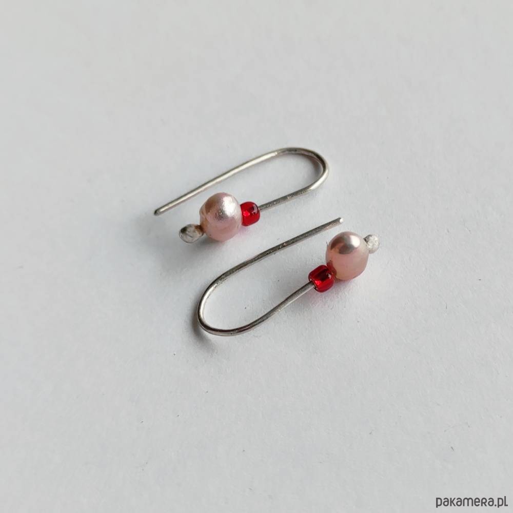 Oryginalność i prostota. OKRĄG - kształt doskonały. Kolekcję cechuje elegancja i prostota jak również ekstrawagancja i indywidualizm. Kolczyki wykonane są z - srebro, Perła słodkowodna biwa fioletowa 6x5mm , szklane koraliki. Srebro - zmatowione. Długość ok 1,7 cm.