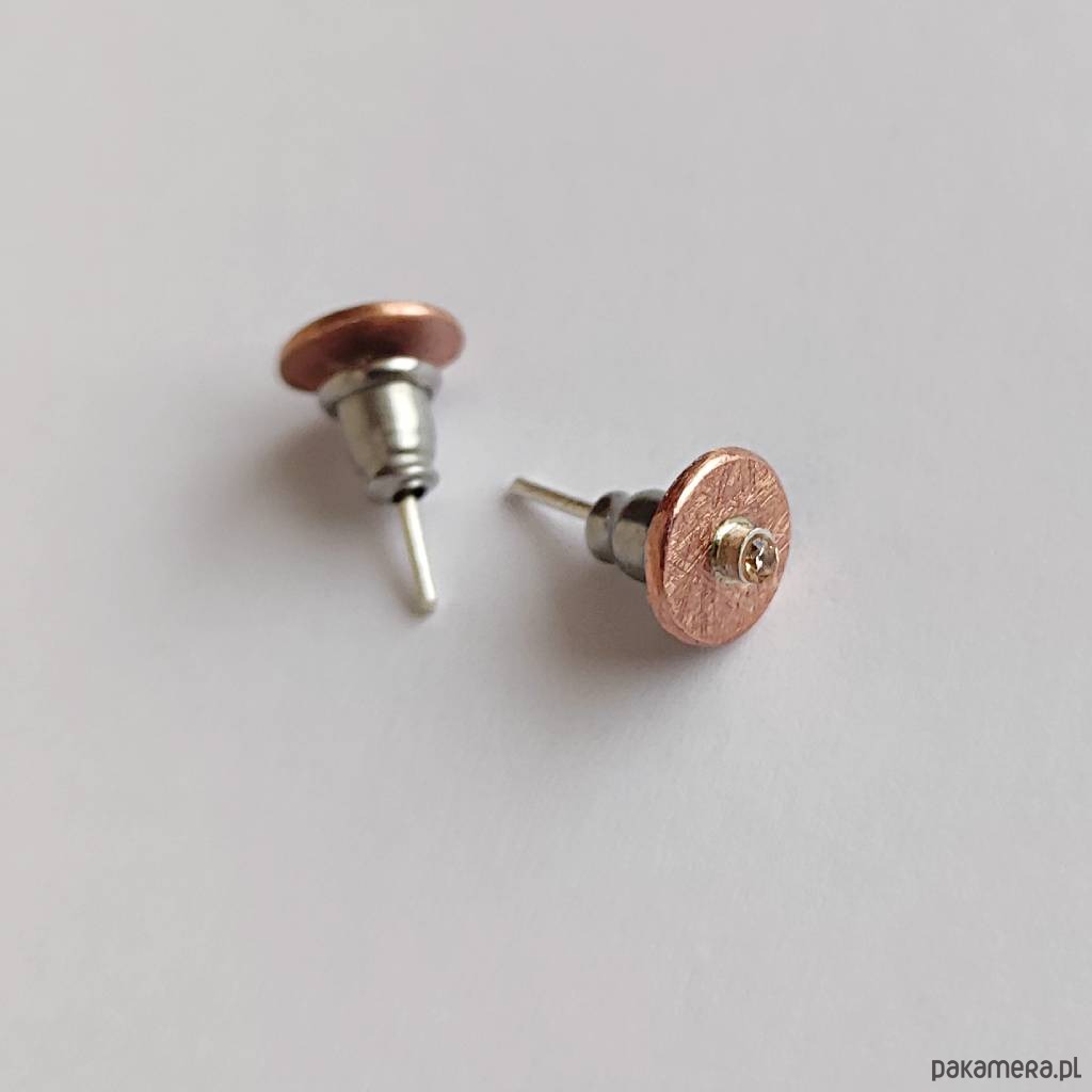 Oryginalność i prostota. OKRĄG - kształt doskonały. Kolekcję cechuje elegancja i prostota jak również ekstrawagancja i indywidualizm. Kolczyki na sztyftach wykonane są z : miedź,cyrkoniaSrebro - próby 0,925, miedź - zmatowiony. Średnica kolczyka - 0,7 cm