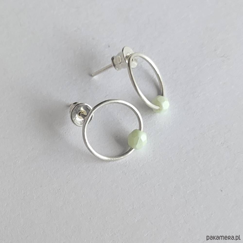 Oryginalność i prostota. OKRĄG - kształt doskonały. Kolekcję cechuje elegancja i prostota jak również ekstrawagancja i indywidualizm. Kolczyki na sztyftach wykonane są z - srebro, koraliki czeskie - 0,4 cm Srebro - zmatowione. Szerokość ok. 1,2 cm.