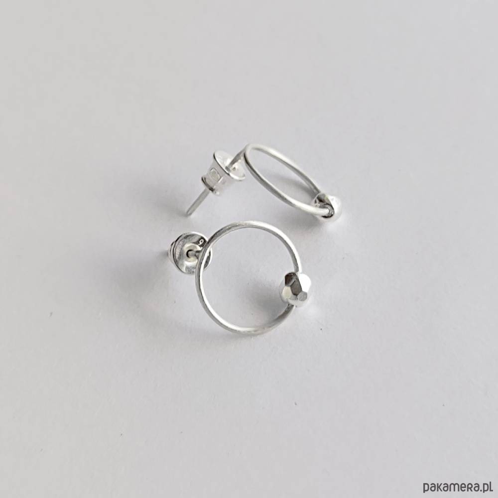 Oryginalność i prostota. OKRĄG - kształt doskonały. Kolekcję cechuje elegancja i prostota jak również ekstrawagancja i indywidualizm. Kolczyki na sztyftach wykonane są z - srebro, koraliki czeskie - 0,4 cm Srebro - zmatowione. Szerokość ok. 1,2 cm.