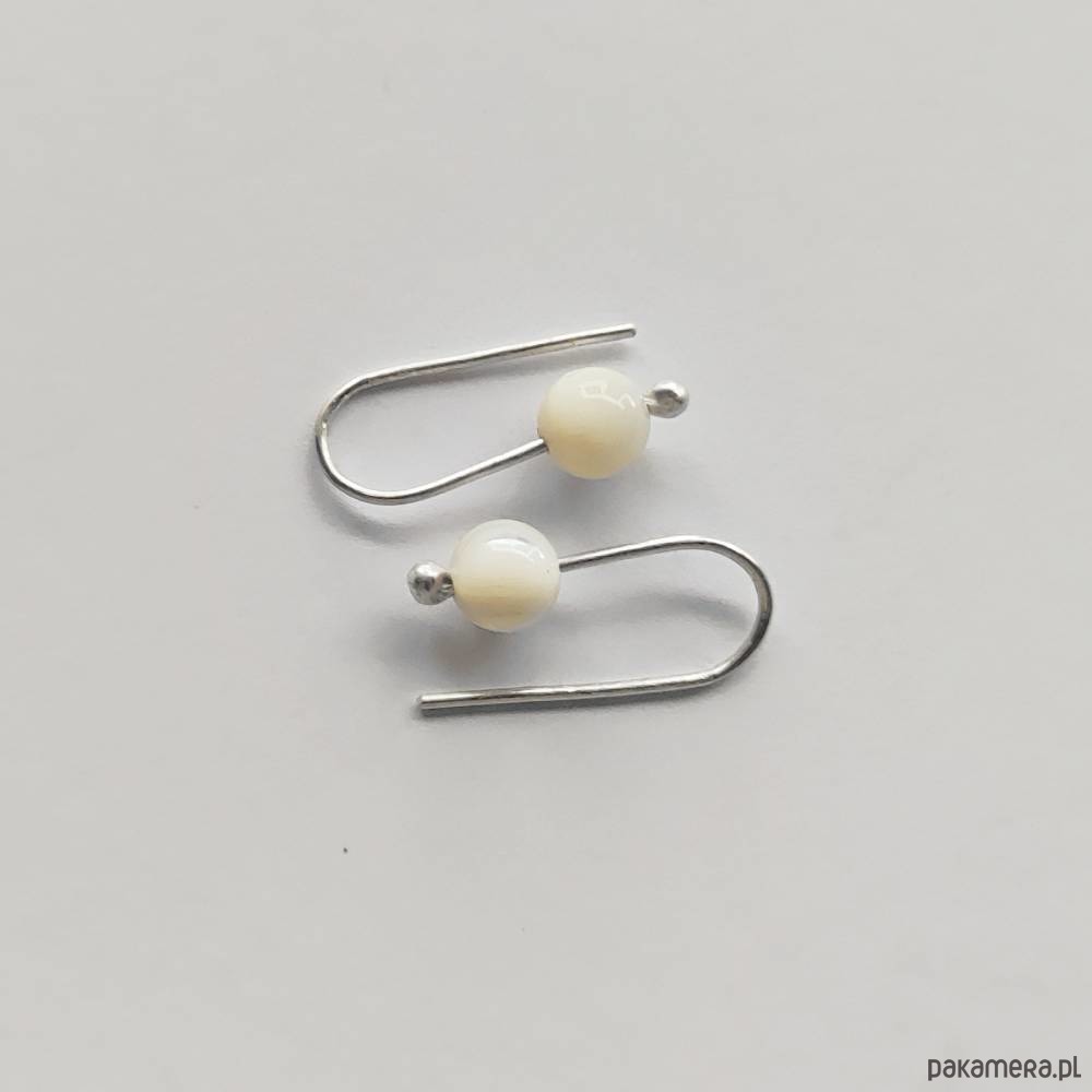 Oryginalność i prostota. OKRĄG - kształt doskonały. Kolekcję cechuje elegancja i prostota jak również ekstrawagancja i indywidualizm. Kolczyki wykonane są ze srebro, muszla biała 0,5 cm. Srebro - próby 0,925, zmatowione. Długość kolczyków - ok. 2 cm