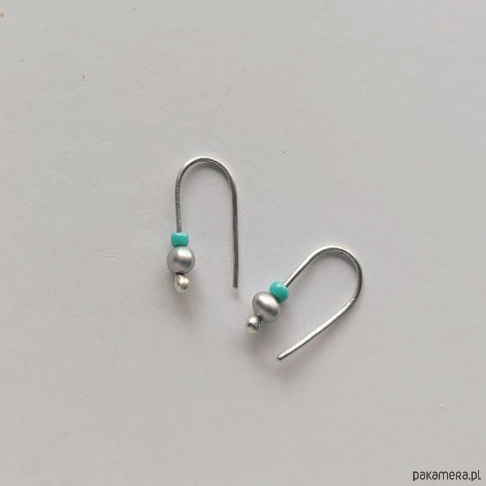 Oryginalność i prostota. OKRĄG - kształt doskonały. Kolekcję cechuje elegancja i prostota jak również ekstrawagancja i indywidualizm. Kolczyki wykonane są z - srebro, Perła słodkowodna srebrna oponka 5x3mm, szklane koraliki. Srebro - zmatowione. Długość ok 1,7 cm.