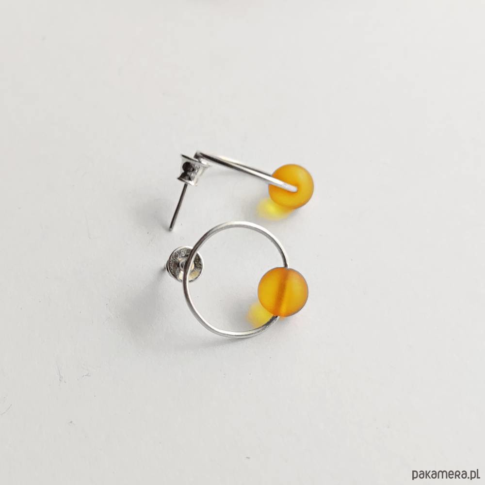 Oryginalność i prostota. OKRĄG - kształt doskonały. Kolekcję cechuje elegancja i prostota jak również ekstrawagancja i indywidualizm. Kolczyki na sztyftach wykonane są z - srebro,Bursztyn kulka 7 mm wiercona kolor słomkowy - mat. Srebro - zmatowione. Szerokość ok. 1,5 cm.