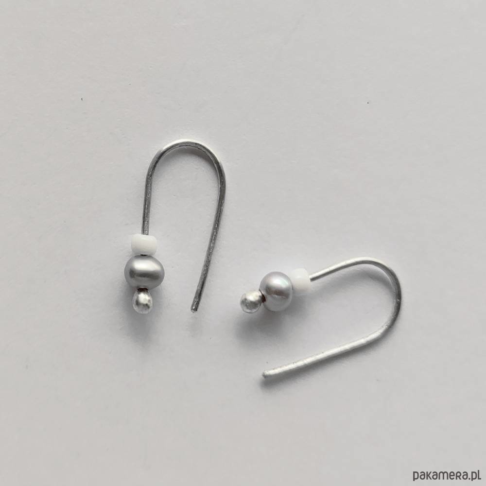 Oryginalność i prostota. OKRĄG - kształt doskonały. Kolekcję cechuje elegancja i prostota jak również ekstrawagancja i indywidualizm. Kolczyki wykonane są z - srebro, Perła słodkowodna srebrna oponka 5x3mm, szklane koraliki. Srebro - zmatowione. Długość ok 1,7 cm.