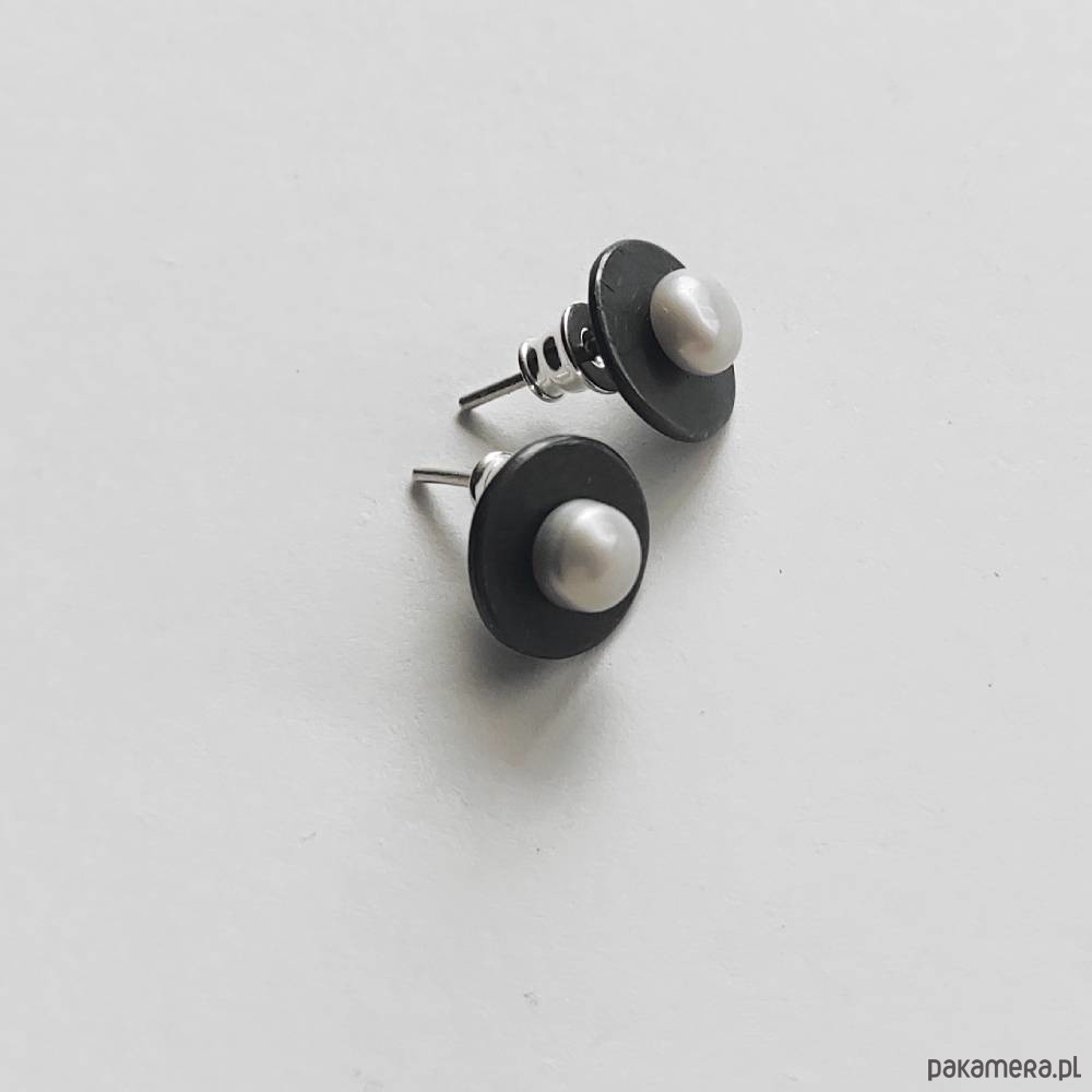 Oryginalność i prostota. OKRĄG - kształt doskonały. Kolekcję cechuje elegancja i prostota jak również ekstrawagancja i indywidualizm. Kolczyki na sztyftach wykonane są z : srebro, Perła szara ( 0k 6 mm)Srebro - próby 0,925, zmatowione, oksydowane. Długość kolczyków - ok. 1,2cm
