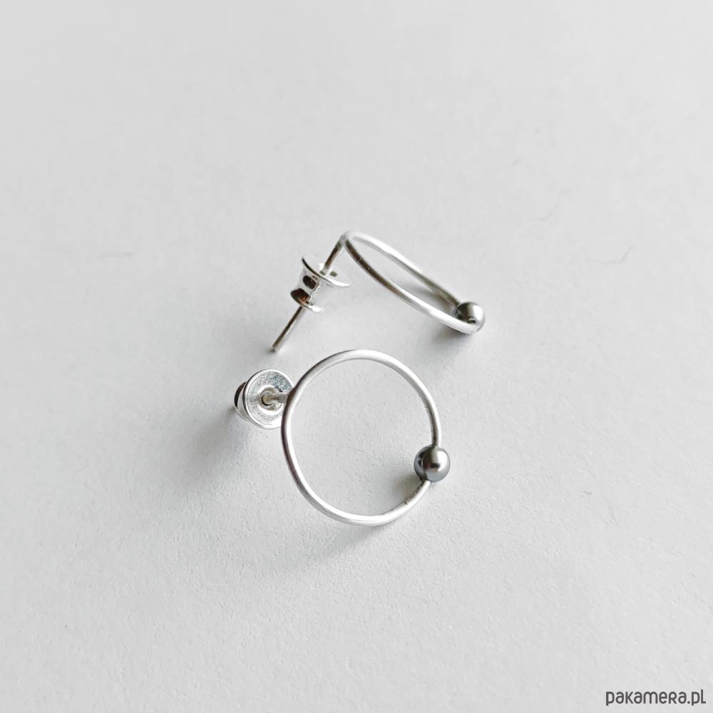 Oryginalność i prostota. OKRĄG - kształt doskonały. Kolekcję cechuje elegancja i prostota jak również ekstrawagancja i indywidualizm. Kolczyki na sztyftach wykonane są z - srebro,Swarovski perła 0,3 cm. Srebro - zmatowione. Szerokość ok. 1,5 cm.