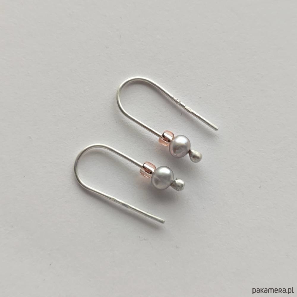 Oryginalność i prostota. OKRĄG - kształt doskonały. Kolekcję cechuje elegancja i prostota jak również ekstrawagancja i indywidualizm. Kolczyki wykonane są z - srebro, Perła słodkowodna srebrna oponka 5x3mm, szklane koraliki. Srebro - zmatowione. Długość ok 1,7 cm.