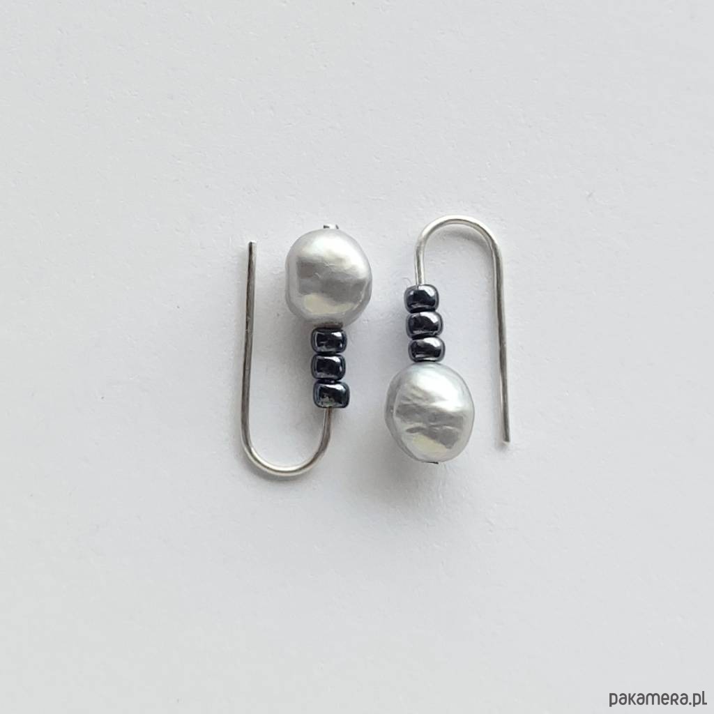 Oryginalność i prostota. OKRĄG - kształt doskonały. Kolekcję cechuje elegancja i prostota jak również ekstrawagancja i indywidualizm. Kolczyki wykonane są z - srebro, Perła hodowlana (0k. 0,8 cm). Srebro - zmatowione. Długość ok. 2 cm.