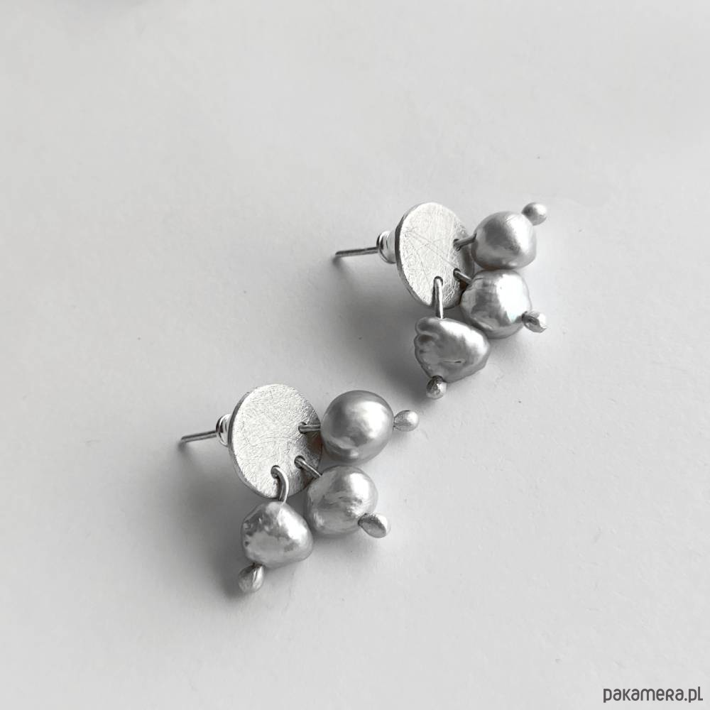 Oryginalność i prostota. OKRĄG - kształt doskonały. Kolekcję cechuje elegancja i prostota jak również ekstrawagancja i indywidualizm. Kolczyki na sztyftach wykonane są z - srebro, perła słodkowodna - 0,8 cm Srebro - zmatowione. Szerokość ok. 1,5 cm.