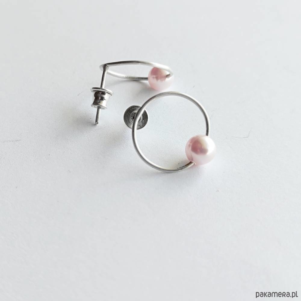 Oryginalność i prostota. OKRĄG - kształt doskonały. Kolekcję cechuje elegancja i prostota jak również ekstrawagancja i indywidualizm. Kolczyki na sztyftach wykonane są z - srebro,Swarovski perła 0,6 cm. Srebro - zmatowione. Szerokość ok. 1,5 cm.
