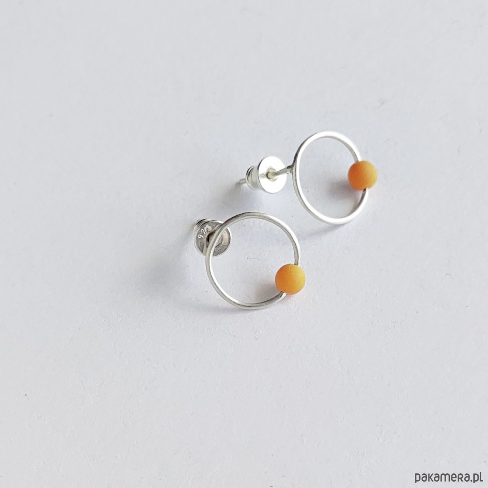 Oryginalność i prostota. OKRĄG - kształt doskonały. Kolekcję cechuje elegancja i prostota jak również ekstrawagancja i indywidualizm. Kolczyki na sztyftach wykonane są z - srebro, koraliki czeskie - 0,4 cm Srebro - zmatowione. Szerokość ok. 1,2 cm.