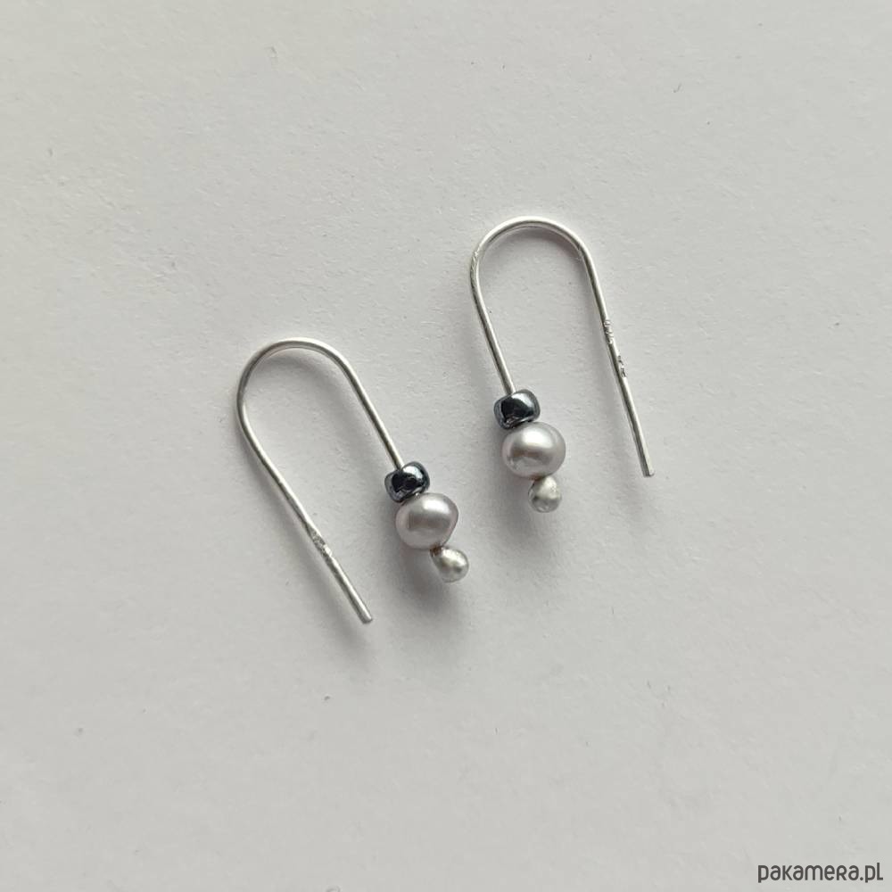 Oryginalność i prostota. OKRĄG - kształt doskonały. Kolekcję cechuje elegancja i prostota jak również ekstrawagancja i indywidualizm. Kolczyki wykonane są z - srebro, Perła słodkowodna srebrna oponka 5x3mm, szklane koraliki. Srebro - zmatowione. Długość ok 1,7 cm.
