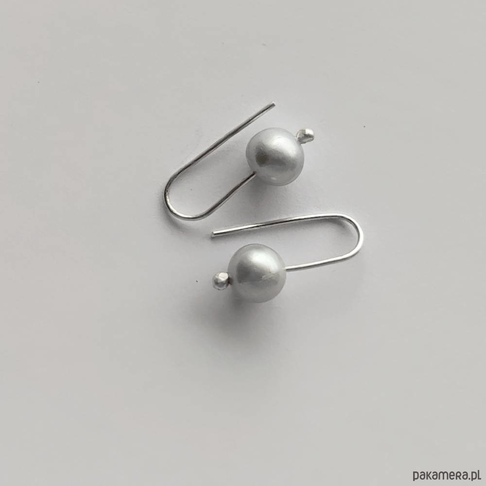 Oryginalność i prostota. OKRĄG - kształt doskonały. Kolekcję cechuje elegancja i prostota jak również ekstrawagancja i indywidualizm. Kolczyki wykonane są ze srebro, perła słodkowodna szara 0,9 cm. Srebro - próby 0,925, zmatowione . Długość kolczyków - ok. 2 cm